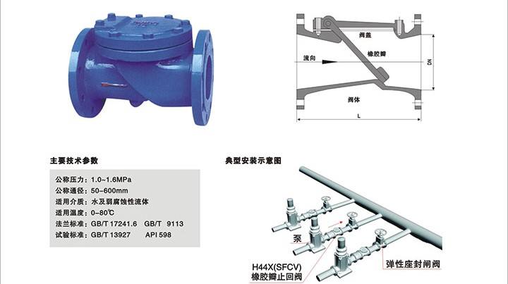 H44X 橡膠瓣止回閥主要技術參數