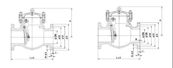H44W/H不銹鋼旋啟式止回閥主要外形尺寸